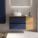 SALGAR BEQUIA Mueble de Baño con Lavabo de Posar y Encimera 2 Cajones 1 Puerta Reversible Azul Mate Roble