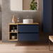 SALGAR BEQUIA Mueble de Baño con Lavabo de Posar y Encimera 2 Cajones 2 Huecos Azul Mate Roble