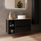 SALGAR BEQUIA Mueble de Baño con Lavabo de Posar y Encimera 2 Cajones 2 Huecos Negro Mate Roble