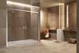 Mampara para frontal de platos de ducha, compuesta por 2 hoja2 fija y 2 puertas correderas sin rodamiento en la parte inferior, que facilita la limpieza y accesibilidad. Apertura desde el centro.