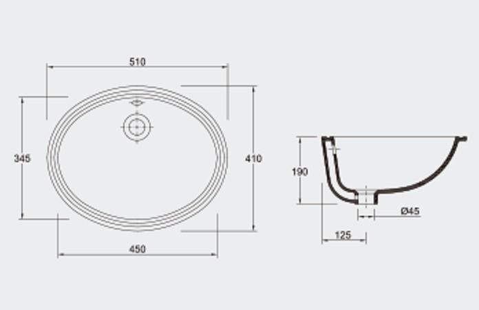 ECLIPSE Lavabo ovalado de porcelana blanca para colocar bajo encimera fabricado en Portugal por Valadares.
