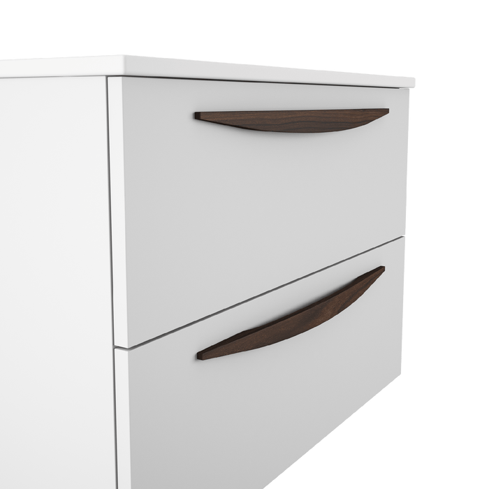 Mueble de baño suspendido con dos cajones y elegante tirador acabado madera de la serie ARCO de Visobath. La serie ARCO es una serie con mucho carácter que va a proporcionar a tu hogar una marcada personalidad. Acabado lacado mate.