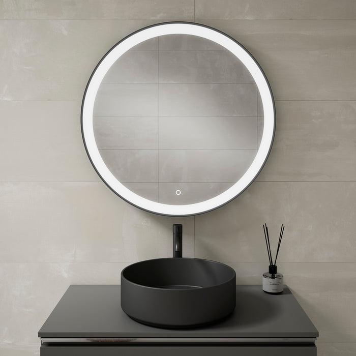 VISOBATH ALEXA Espejo Redondo con Luz LED Retroiluminado Sensor Touch Antivaho Color Negro