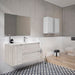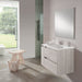 Mueble de baño suspendido con dos cajones y una puerta de la serie BOX de Visobath. Acabado laminado natural abedul.