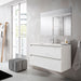 Mueble de baño suspendido de dos cajones de la serie BOX de Visobath. Acabado lacado blanco nieve brillo.