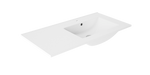 Lavabo FLAT cerámico blanco brillo con seno desplazado a la derecha y pequeña encimera a la izquierda.
