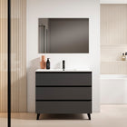 Mueble de baño con patas a suelo de 3 cajones con cierre Soft Close de cierre amortiguado y extracción total con sistema de autocierre y con interior textil. Cajón superior con organizador.